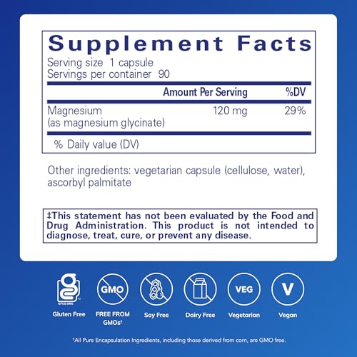 Pure Encapsulations Magnesium (Glycinate) – Supplement to Support Stress Relief, Sleep, Heart Health, Nerves, Muscles, and Metabolism* – with Magnesium Glycinate – 90 Capsules